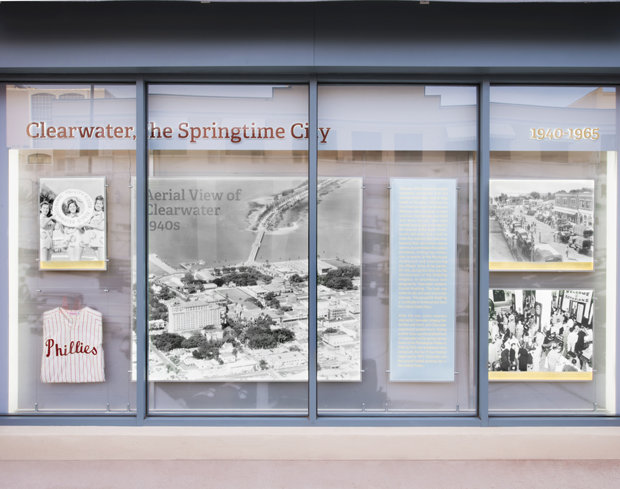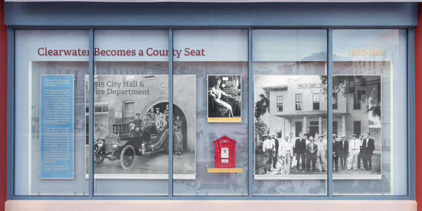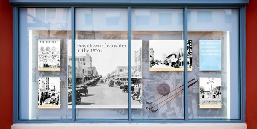 Als eerbetoon aan de geschiedenis van Clearwater heeft de kerk een permanente expositie ingericht over de hele lengte van de buitenkant van het Coachman-gebouw aan Cleveland Street en Fort Harrison Avenue. De expositie laat foto's zien, heeft informatieve displays en toont voorwerpen die de geschiedenis van de stad in beeld brengen van zijn vroegste ontstaan tot nu toe. Onder de vele mijlpalen uit de geschiedenis van Clearwater laat de tentoonstelling het volgende zien: