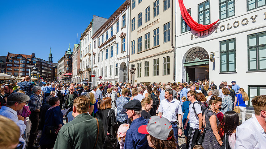 En zo gebeurde het, dat op een glorieuze Deense middag, meer dan 2500 scientologen en gasten bijeen waren gekomen op het plein van kinderkopjes, ter viering van een nieuwe pagina in de geschiedenis van één van Scandinavië’s oudste en cultureel rijkste hoofdsteden en ter viering van de volgende stap in het seizoen van groei van de Kerk.