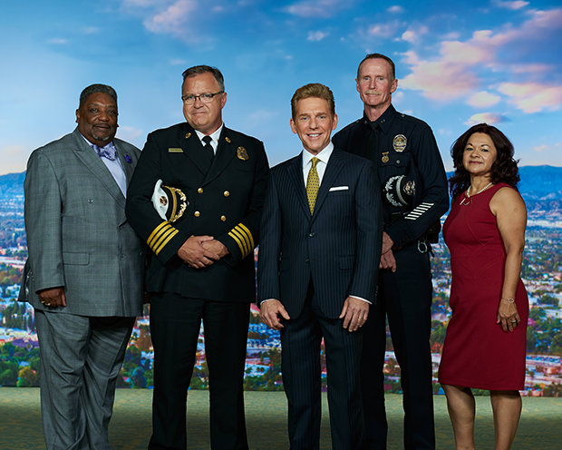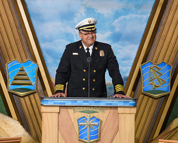 Hij benadrukte verder het voorbeeld van de Kerk bij het verenigen van een interreligieuze kruistocht in de regio. “Laten we eerlijk zijn, of je nu joods, katholiek, christelijk of scientoloog bent, we zijn hier allemaal om een betere gemeenschap te maken en ieders leven te verbeteren. Maar het is een feit dat de Scientology Kerk een leidende rol heeft ingenomen onder onze kerken. Jullie dienen in grote mate als spil in het verenigen van de religieuze beweging die alternatieve oplossingen aanbiedt en steunt. En jullie hebben dat samen met elk politiebureau van Valley gedaan. Jullie smeden niet alleen een publiek vertrouwen, maar stellen ook onze toekomst veilig. Dat is wat ik nou ‘het geloof belichamen’ noem!”