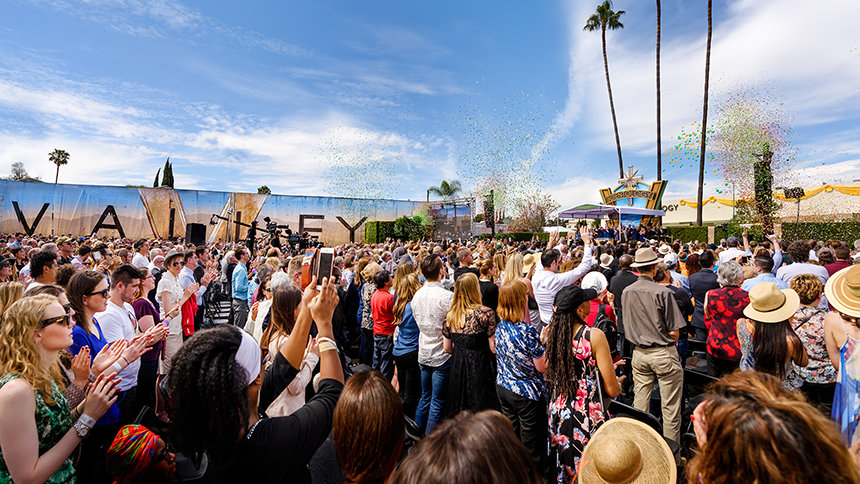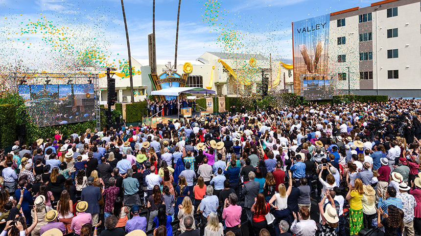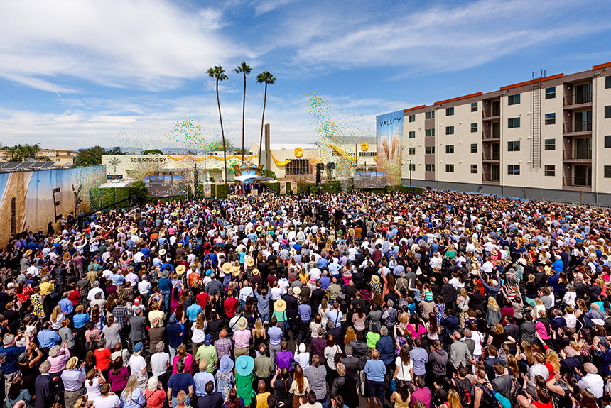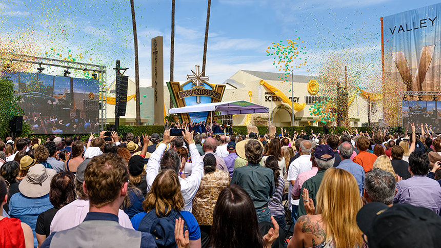 En zo gebeurde het, dat op zondag 19 maart om 13:00, 5000 scientologen bijeen kwamen om getuige te zijn hoe de grootste Ideale Scientology Kerk in Noord-Amerika tot leven komt. Het was een ceremonie die gepast is voor de omvang, reikwijdte en het belang van het nieuwe thuis van Valley. Het bestond uit een bonte verzameling van klassieke filmmuziek die deed denken aan de gouden dagen van de film, tot de “V voor Valley”-hymne die speciaal voor deze gelegenheid was geschreven en gearrangeerd. De duizenden aanwezigen sprongen op hun voeten en applaudisseerden voor elke gepassioneerde hoogwaardigheidsbekleder die de grotere maatschappelijke impact van de Kerk prijsde.