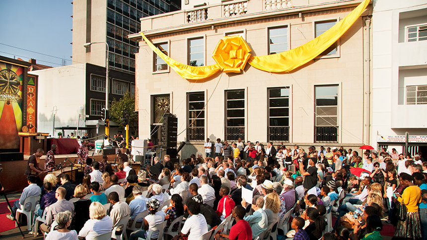 Het Centrum is gelegen nabij de Universiteit van Witswatersrand (WITS) in het Braamfontein district van de stad, en dient dus een rijk gevarieerde gemeenschap waarvan het gemeenschappelijke doel wordt uitgedrukt in het motto van de wijk: “De plek waar mensen tot grootheid stijgen”. Als ceremoniemeester, had de directeur van het Centrum, Edmund Dladlu, toegezegd om samen met de gemeenschap dit motto tot een realiteit te maken.