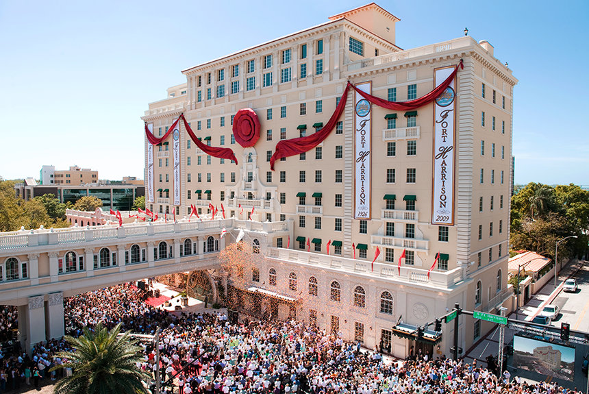 “Haar fundering was goed, haar geschiedenis onberispelijk en haar locatie kon niet beter zijn: Clearwater, Florida.” Zo begon David Miscavige zijn toespraak: “Bij haar oorspronkelijke opening in 1926 noemde men haar 'De aristocraat in het hotelwezen van Florida". Men omschreef het hotel als een 'schilderachtig bouwwerk", als het juweel van de stad, een populaire plek voor huwelijksfeesten, modeshows, theekransjes en bijeenkomsten van de Rotary Club.