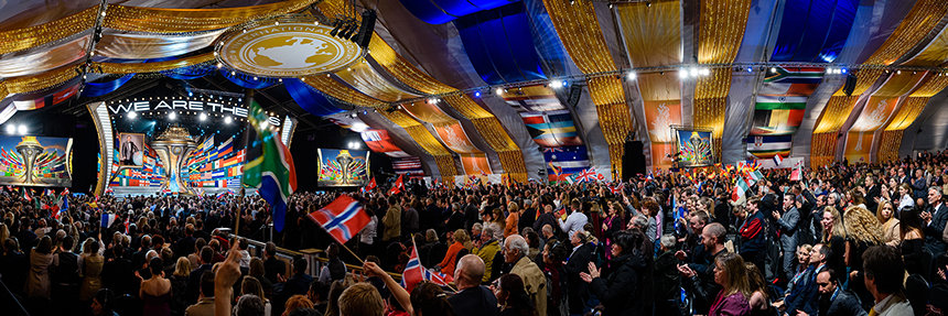 Het evenement van vrijdagavond doorkruiste de volledige inboedel van humanitaire prestaties in het afgelopen jaar, en richtte zich op de vermaarde door de IAS-gesponsorde initiatieven, wat begon met een treffend overzicht van de inspanningen om misstanden in de geestelijke gezondheidszorg uit te roeien, door de Citizens Commission on Human Rights (CCHR). Terwijl de avond zich ontvouwde, kwamen er opwindende verhalen te boven, die de Drugs-Vrije Wereld belichten en haar vlijmscherp Feiten over Drugs onderwijsprogramma; United for Human Rights, die de vlam aanwakkeren van de Universele Verklaring voor de Rechten van de Mens; De Weg naar een Gelukkig Leven, wat fatsoen en broederschap herstelt onder de mensheid door middel van de 21 universele morele leefregels; en de beantwoording van de oproep van nood door de Scientology Pastoraal Werkers, die helpen in kwesties die variëren van alledaagse conflicten tot verwoestende natuurrampen. Elk programma werd als een krachttoer gepresenteerd, en liet het effect zien op individuele levens waar ze ook heengingen, wat overal is.