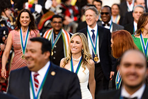 De ontvangers van de drie IAS Freedom Medals dit jaar toonden hun moed. Daarmee werd het thema van de avond onderstreept, de niet-aflatende toewijding in de richting van het bereiken van vrede, onderwijs, fatsoen, sociale gerechtigheid en een bestaan vrij van drugs en criminaliteit over de hele wereld. Dhr. Miscavige introduceerde elk van hen afzonderlijk, en er waren speciale videopresentaties die hun onverschrokken toewijding aan de mensheid toonde: