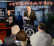 Het eerste onderwerp van de avond ging over het onverschrokken werk van de Citizens Commission on Human Rights en haar 50-jarige jubileum van de bestrijding van misstanden in de geestelijke gezondheidszorg. Onder de successen die genoemd werden, waren: