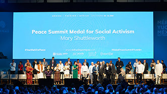 - De 17e Wereldtop van Winnaars van de Nobelprijs voor de Vrede overhandigde de ‘Medaille van de Vredestop voor Sociaal Activisme’ aan Jongeren voor Mensenrechten en haar voorzitter, Mary Shuttleworth. De onderscheiding, die persoonlijk door Nobelprijswinnaars wordt toegekend, vertegenwoordigt een belangrijke bijdrage aan vrede en mensenrechten.