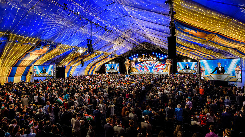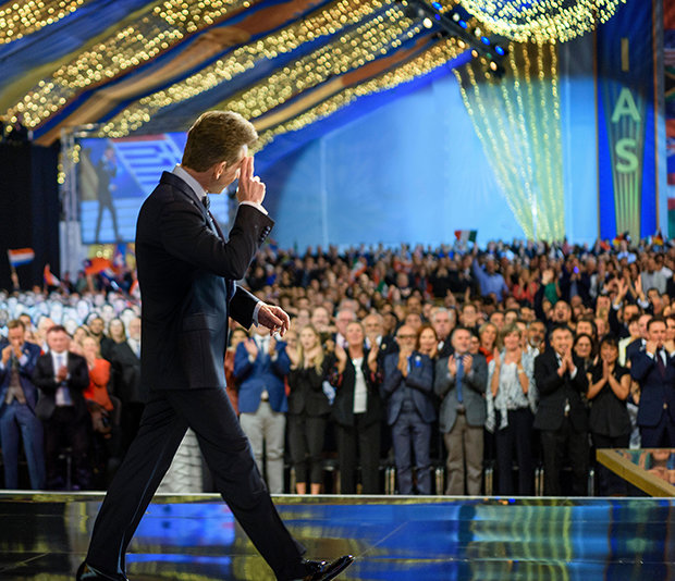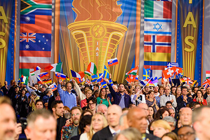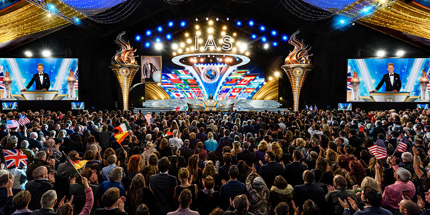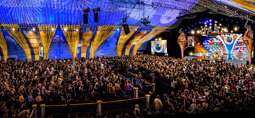 De Internationale Associatie van Scientologists (IAS) komt samen in East Grinstead, in het zuiden van Engeland, om een jaar van ongeëvenaarde successen in de naam van het verheffen van de Mensheid, te vieren.