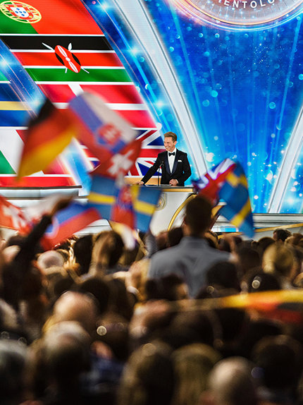 De avond ging verder met een steeds groter wordend uitzicht over de humanitaire prestaties door initiatieven gesponsord door de IAS: Verenigd voor de Mensenrechten, een onderwijsprogramma gericht op De Universele Verklaring van de Rechten van de Mens dat de implementatie ervan door regeringen over de hele wereld bepleit; Stichting voor een Drugsvrije Wereld, het grootste non-gouvernementele drugsonderwijsprogramma ter wereld; en De Weg naar een Gelukkig Leven, L. Ron Hubbards niet-religieuze morele code, bestaande uit 21 leefregels die een gids voor een beter leven vormen, gebaseerd op gezond verstand.