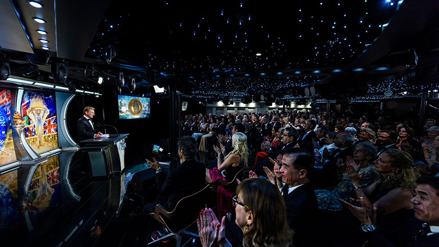 Toen de heer Miscavige het publiek op de eerste avond begroette, bracht hij ook een eerbetoon aan de Freewinds, van wie de bemanning – inclusief 5 gezagvoerders en 133 experts in overleven – samen een verbluffende 5000 jaar ervaring op zee heeft. Het schip, zei hij, was vrijwel geheel vernieuwd sinds haar Maiden Voyage, waarmee ze “het veiligste schip op de zeven zeeën” is geworden.