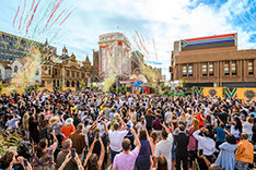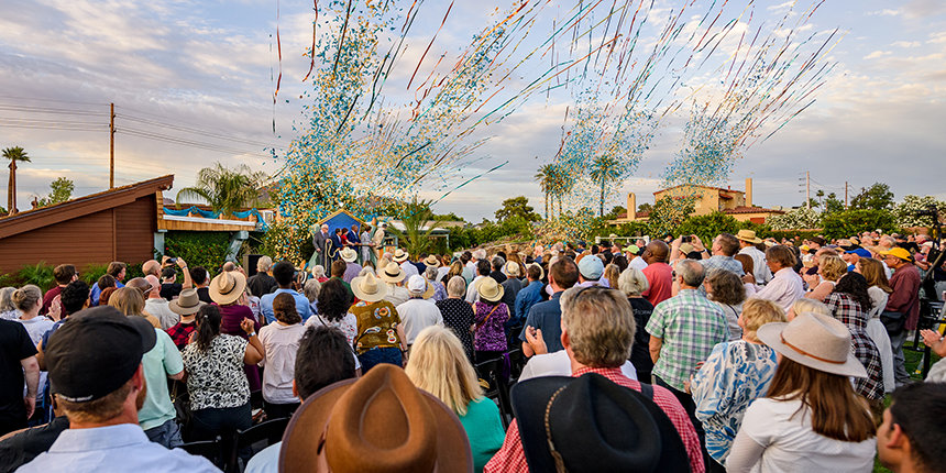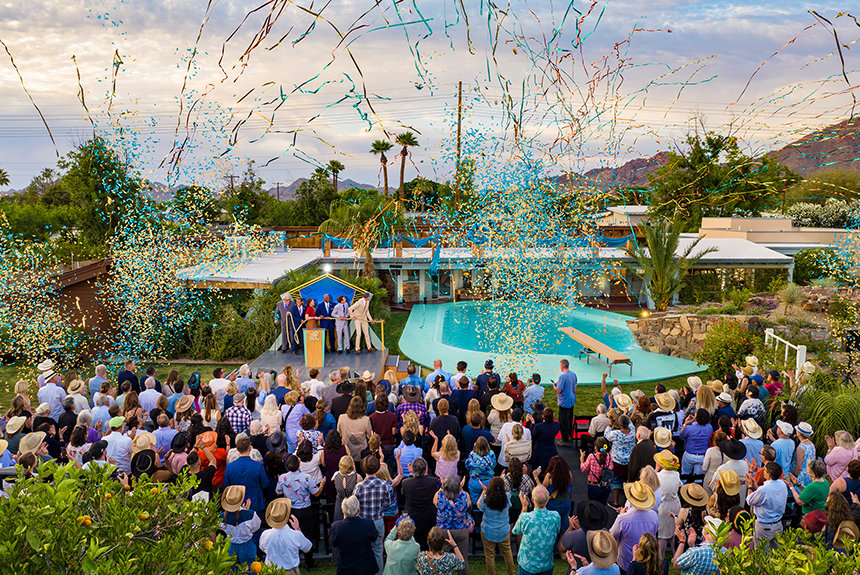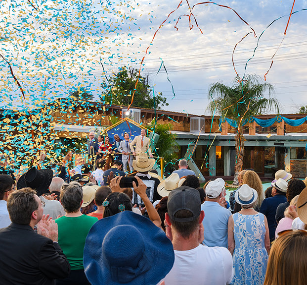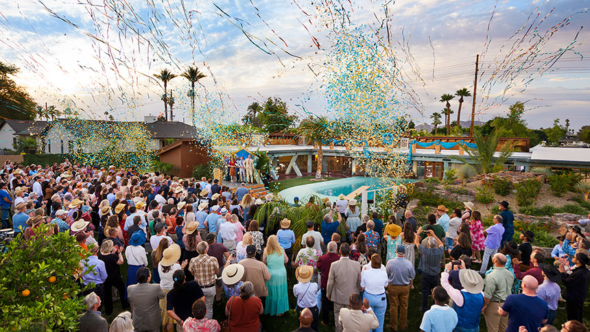 Op een woestijnwarme zaterdagavond werd dat historische gebouw opnieuw geopend, herboren als een L. Ron Hubbard Historische Locatie. Op deze locatie, een locatie van internationaal belang, “veranderde de toekomst voor altijd”, zei de Erfgoedbeerder van de Scientology Kerk, die de ceremonie leidde en toezicht had gehouden op de historische restauratie van de locatie.